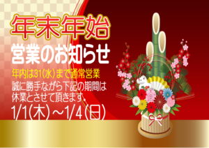 尚、年内のネットからの受付は27日(土)の午前中までお受けさせて頂きます。